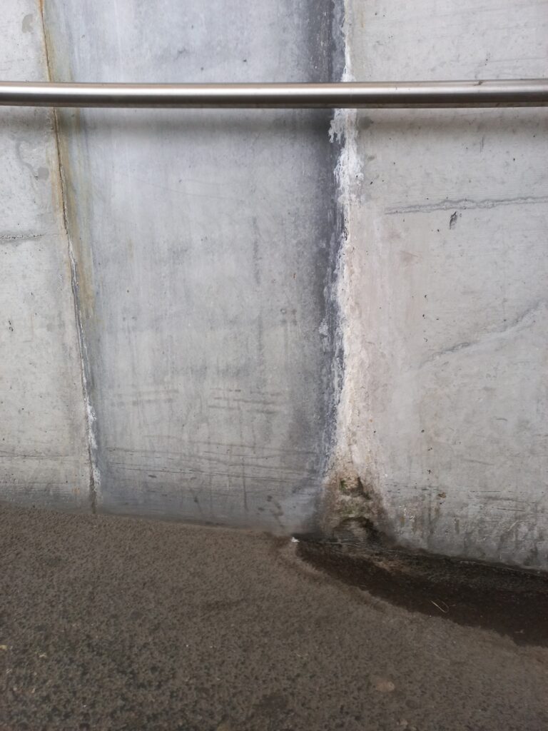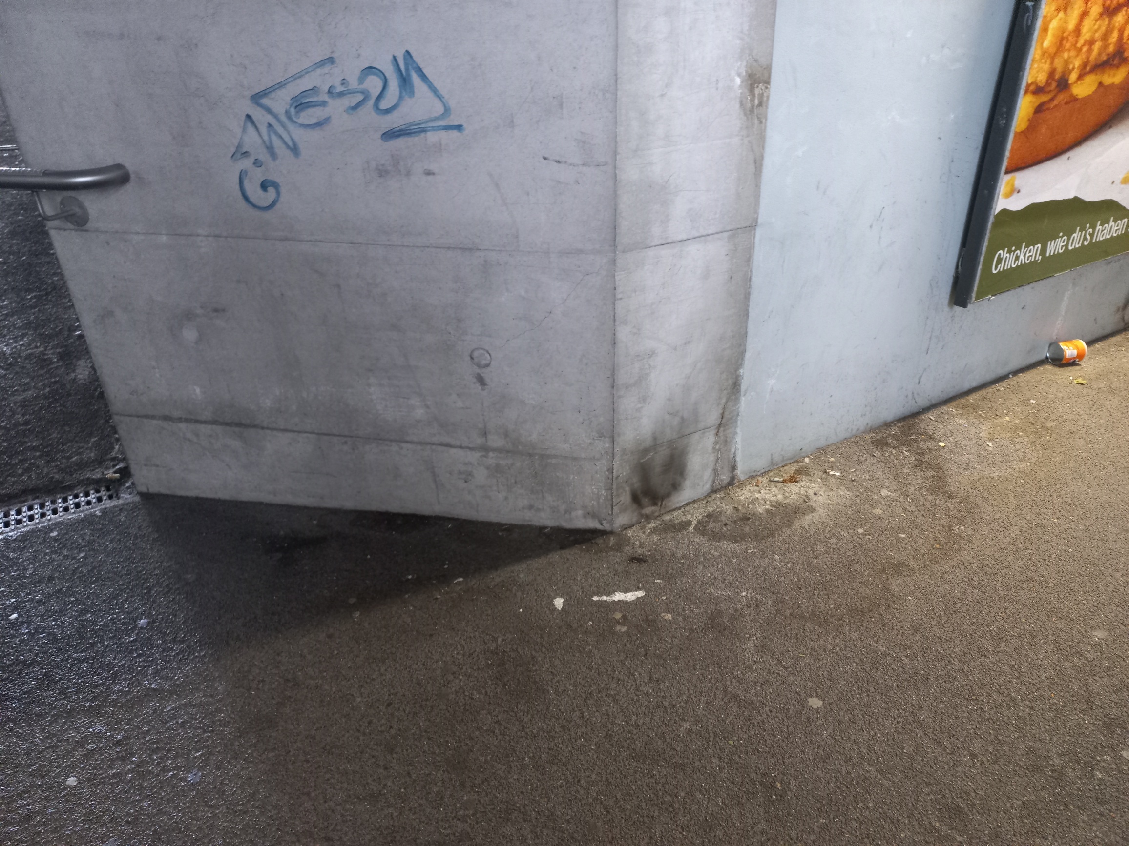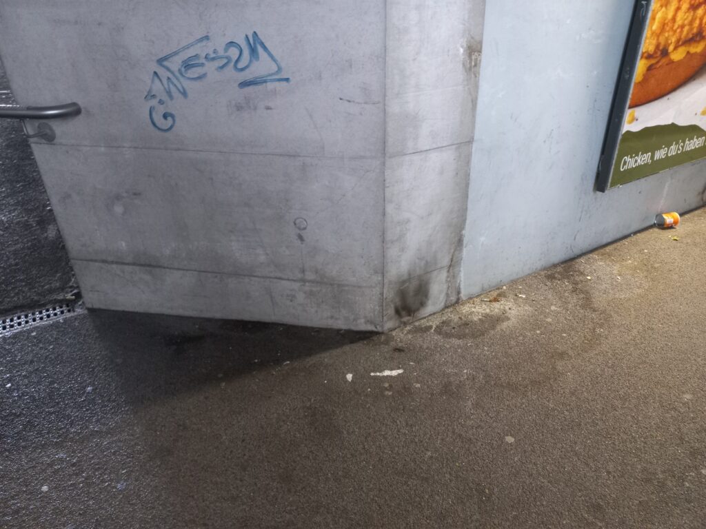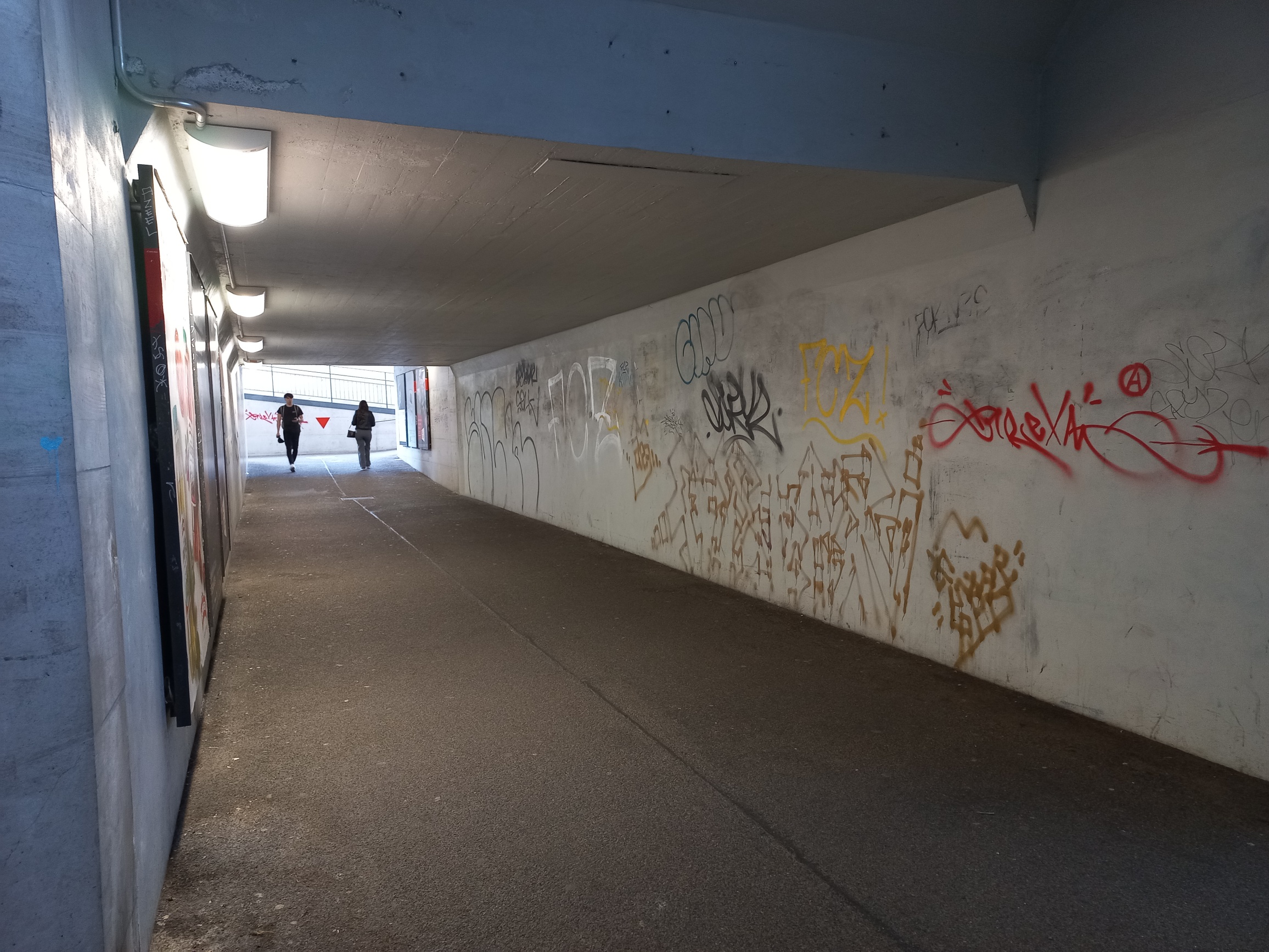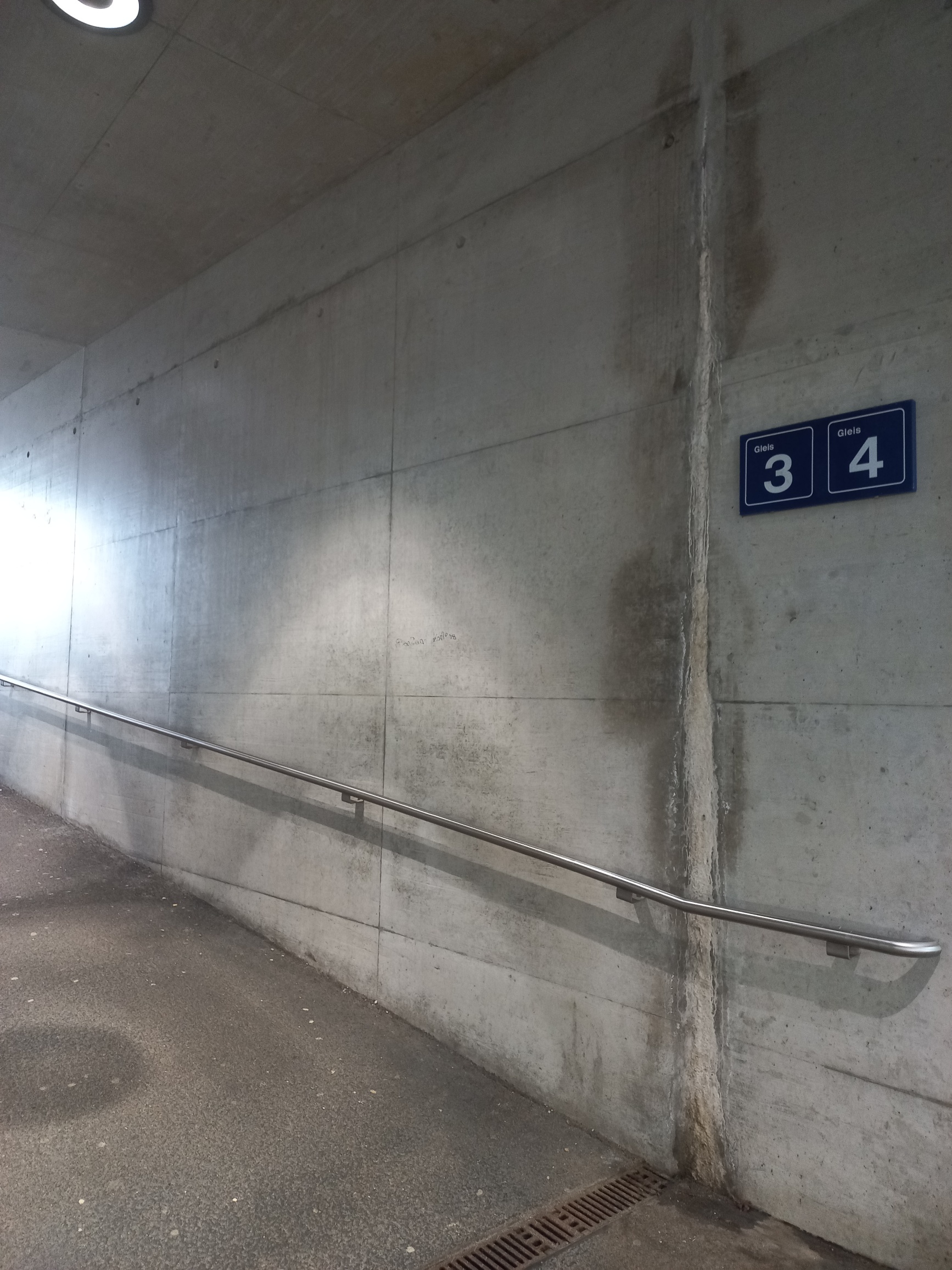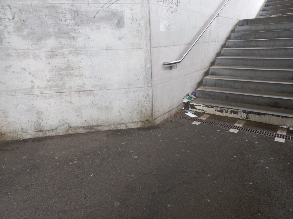 Die Unterführung weist an mehreren Stellen Wassereindringungen auf, ohne dass diese Mängel beseitigt oder – mindestens – die schadhaften Stellen abgedeckt wurden. Diese Mängel bestehen seit vielen Jahren und wirken erbärmlich.