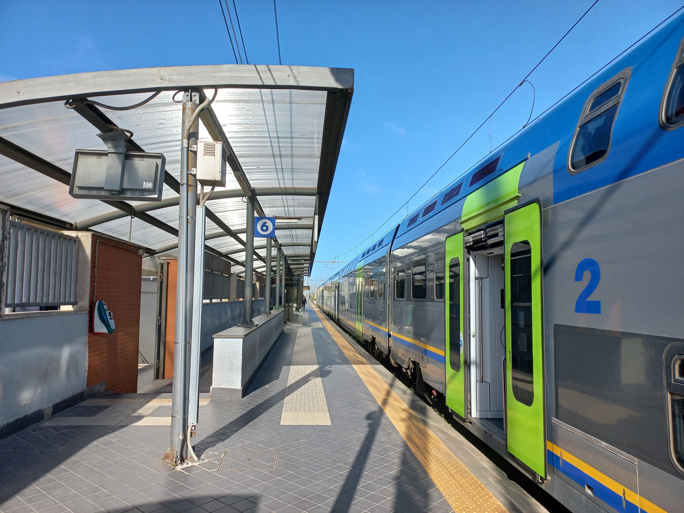 In Foggia hielt ich mich am 5. April 2024 zwischen 12.45 Uhr und 14.00 Uhr auf. Dank dem Bahnersatzverkehr zwischen Benevento und Foggia war es möglich, während der Anreise mit dem Bus ein paar Eindrücke von der Stadt zu gewinnen. Foggia mit rund 150’000 Einwohnern erscheint weniger wohlhabend zu sein als Caserta, beeindruckt aber durch zahlreiche baulich abgetrennte Fahrradrouten.