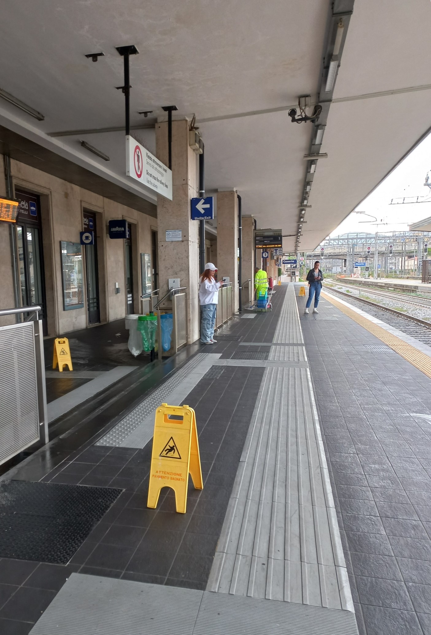 Alle Bahnhöfe beeindrucken durch minimale Schäden an den Gebäuden und durch ihre fast klinische Sauberkeit. In Caserta konnte ich sowohl am Morgen früh als auch am Abend Reinigungspersonal an der Arbeit beobachten. Die Fussböden des Bahnhofs Caserta werden täglich zweimal feucht aufgenommen. Teilweise ein krasser Gegensatz zu der nicht immer so gepflegten Umgebung.