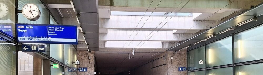 Auf der Rückreise nach Genf bietet sich Gelegenheit zu einer kurzen Besichtigungstour im Bahnhof Chêne-Bourg. Dieser Bahnhof an der Ceva beeindruckt in jeder Hinsicht. Grosszügig, modern, sauber und frei von Verunstaltungen – ein Vorbild für die Metropolitanräume in der deutschen Schweiz! Dazu ohne Kommentar ein paar Bilder.